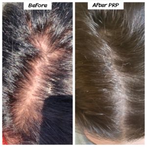 PRP increases thickness of individual hairs, improves density of hairs, reduces show through of scalp, triggers and maintains a prolonged growing phase of hair, and reduces hair shedding.